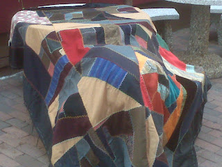 So here is a line we are calling "Auntie Teak" after the antique crazy quilt we cut up to make them. Now before all of you cringe in disgust, over our blatent destruction, we salvaged the quilt from the dark depths of a wet basement, so it really never would have made a nice quilt. We believe the quilt dates back to the 1930's. Now how cool is this! They are really "one of a kind pieces"!