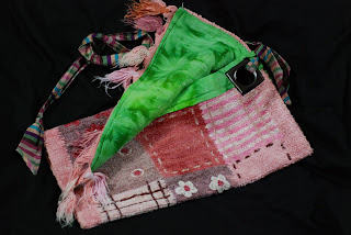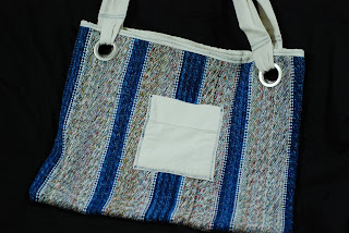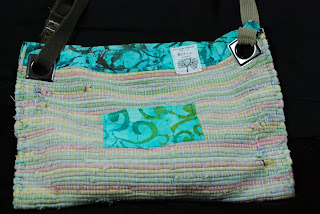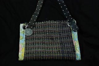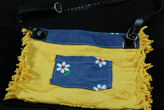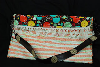 I was a silly old rug before I was rescued from the local thrift sore. Now I am a very cool, very trendy bag. I feel as though I have a new lease on life, and what is better, instead of the world walking all over me, I can carry it for you! Won't you take me home today.I measure approx 24" wide and 18" deep. I am completely lined with a blue table cloth, ornate with white and red daises. My strap is made from two reclaimed leather belts. My belts are adjustable. I also have a a pocket on the front to carry your cell phone and keys.